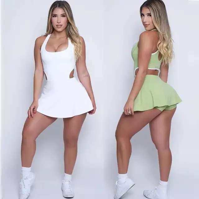 กระโปรงกีฬาผู้หญิงน้ำหนักเบากระโปรงกีฬาสำหรับผู้หญิงกับกางเกงขาสั้นกระโปรงเอวสูงไล่ระดับสี