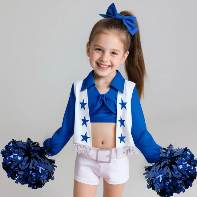 ชุดยูนิฟอร์มเชียร์สำหรับเด็กผู้หญิงชุดฝึกซ้อมเชียร์พลอยเทียมสีระเหิดแบบซับลิเมชันสินค้าใหม่2024